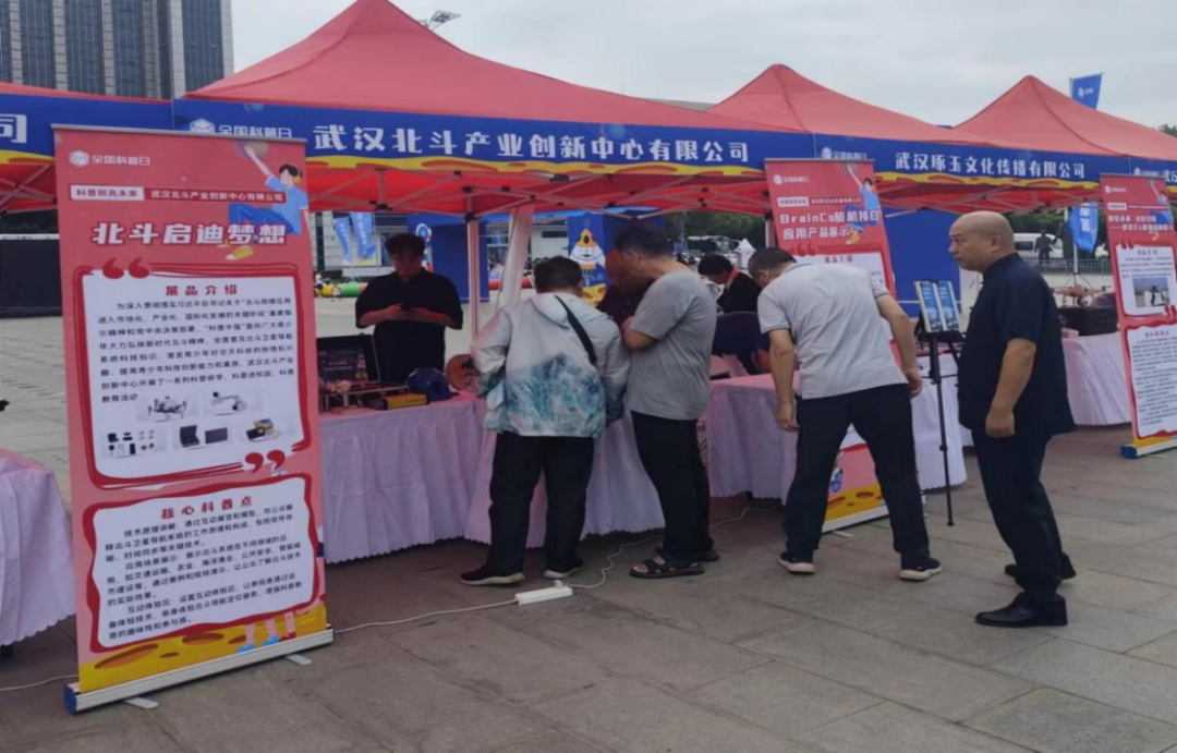 其中,武汉北斗产业创新有限公司以“北斗启迪梦想”为科普主题,通过互动展览和模型操作,向公众展示北斗卫星导航系统的工作原理和构成,吸引众多爱好者前来观看咨询。