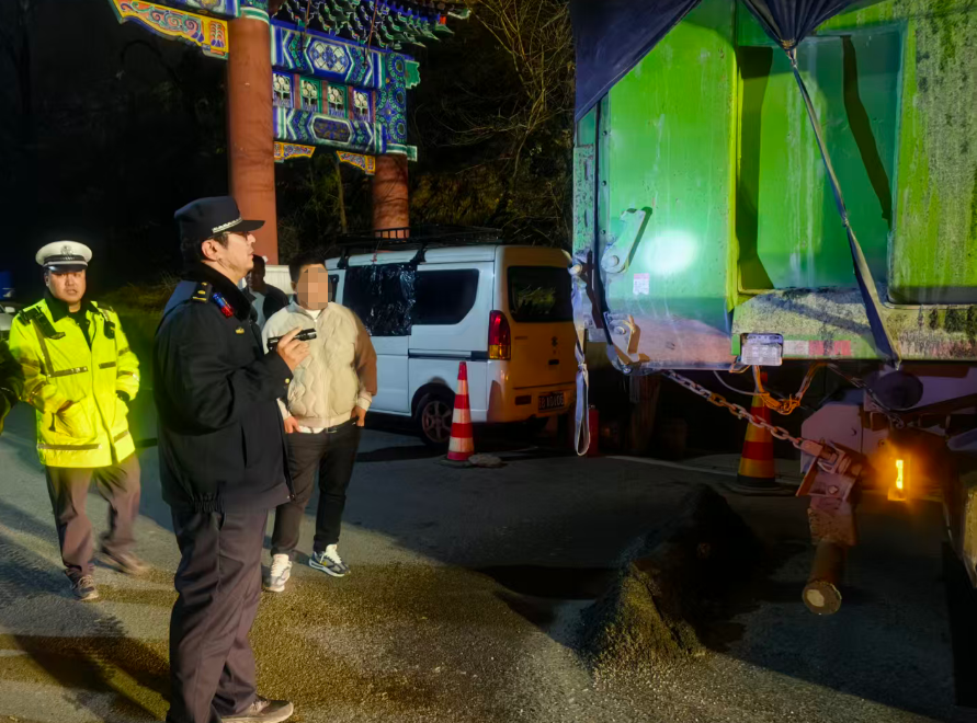 协助属地执法队强化数据分析与趋势研判,精准摸排运输车辆通行规律,锁定每日20时至24时为泄漏遗撒高发关键时段,变“全域巡查”为“定点值守、错峰管控”,提升治理效能。同时打破部门壁垒,牵头建立跨部门联动机制,联合区城管委、区公安分局交管支队、区交通局、区生态环境局、交通运输执法总队九支队、永定镇等多部门,明确职责分工、统一执法标准,形成“统一指挥、快速响应、协同处置”的治理合力。